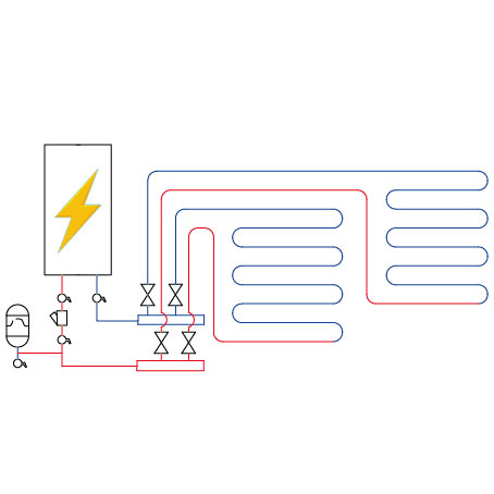 Om de warmte op een zachte en homogene manier te verdelen over de vloer van uw kamers (parket, tegels, tapijt, enz.), kunt u de elektrische CV-ketel koppelen aan een verwarmde vloer hydraulisch. Het voordeel van dit systeem? Het is onzichtbaar, vraagt weinig onderhoud, stoot geen stof uit en geeft geen geluid of elektromagnetisme hinder. Volgens het Bureau Ecologische Transitie kan vloerverwarming het energieverbruik met 7% verminderen. Beschouwd als een zogenaamde"lage temperatuur" verwarming, kan de vloerverwarming 2°C lager ingesteld worden dan een radiator voor gelijkwaardig thermisch comfort.