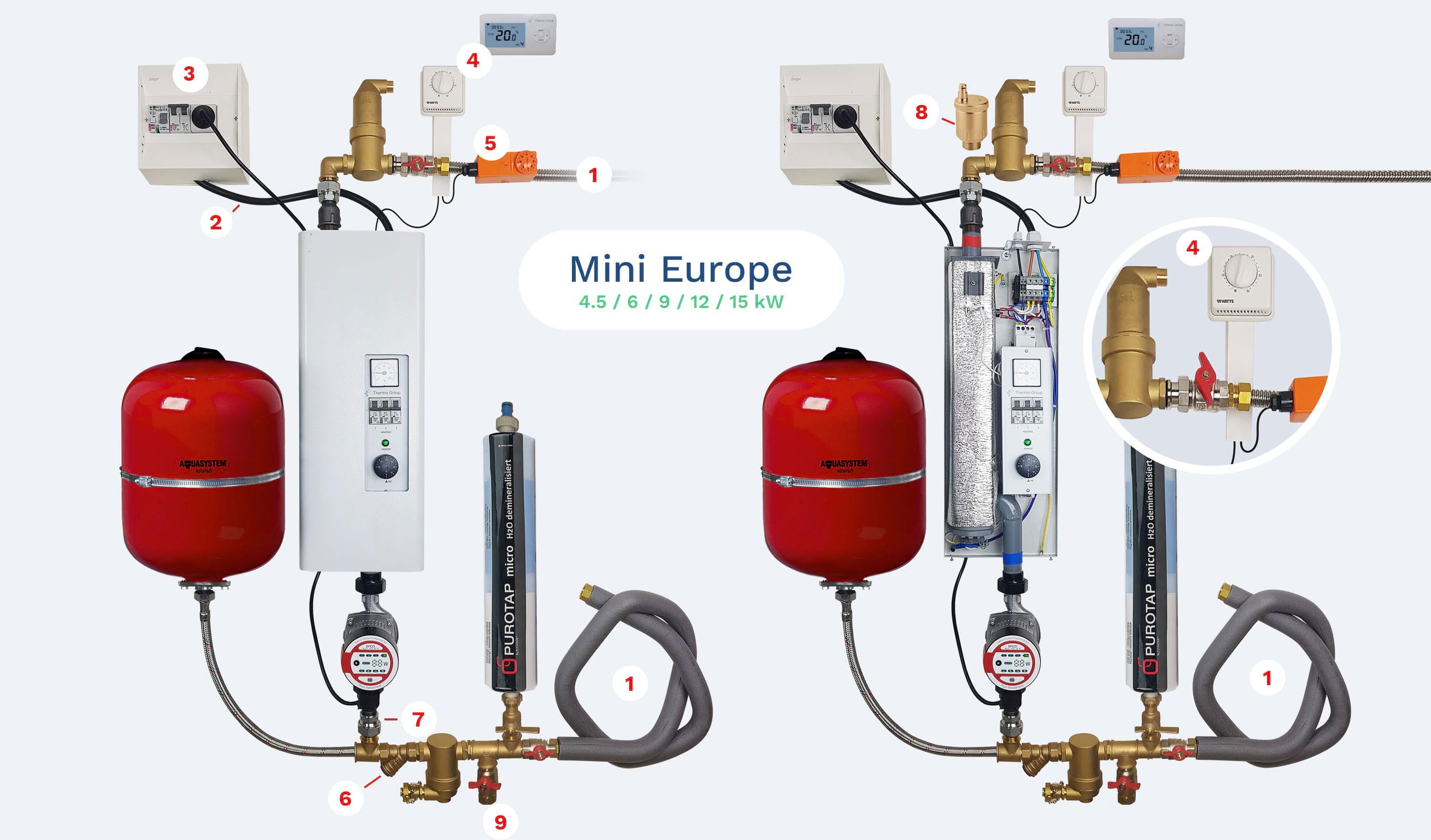 Onze mini-elektrische CV-ketel voor eenvoudige installatie in uw CV-netwerk.